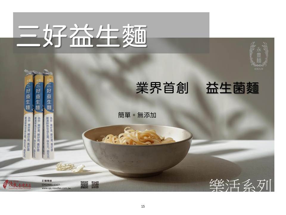 樂活系列 2.0 : 業界首創一款含有益生菌的機能性麵條